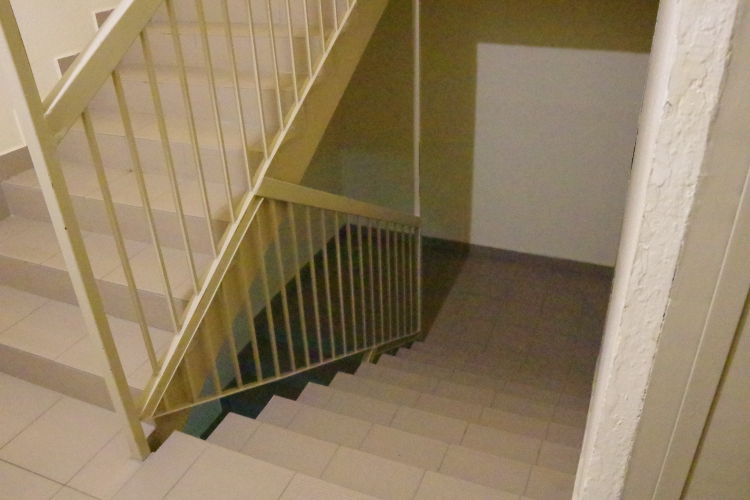 A lépcsőházak biztonságának másik, fontos értelme, hogy itt senki nem eshet le, nem zuhanhat, nem vetheti magát több emeletnyi mélységbe. Sem kisgyermek, sem öngyilkos. A kétkarú lépcsőházak karjai egymás mellett futnak, köztük nem nyílik tér, egymástól magas korlát vagy fal választja el őket.