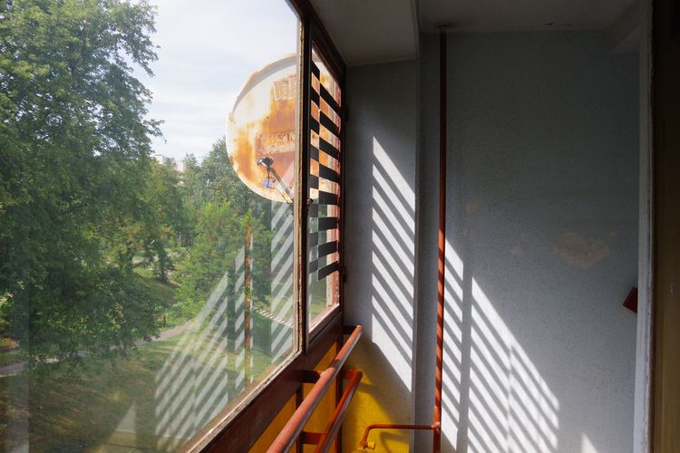 Megmutatkozik a kilátásban is: az üde természet lépcsőforduló ablakából nyíló látványban (fák, zöld, napfény) egy elrozsdásodott, használaton kívüli antenna éktelenkedik (manapság médiaszolgáltató sincs hozzá).